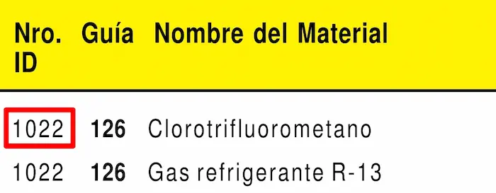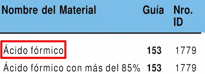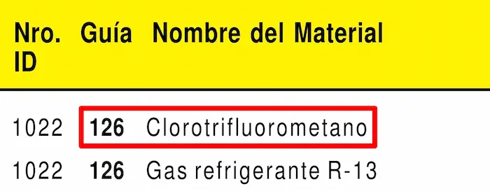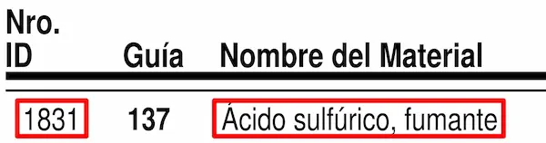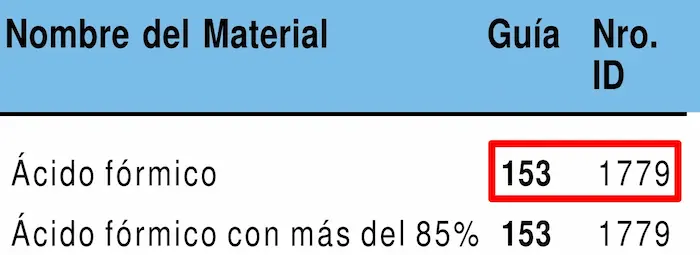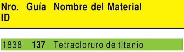 2. Haber encontrado la Guía naranja correspondiente al R.P., para consultar las acciones de emergencia que se recomiendan en conjunto con esta tabla.