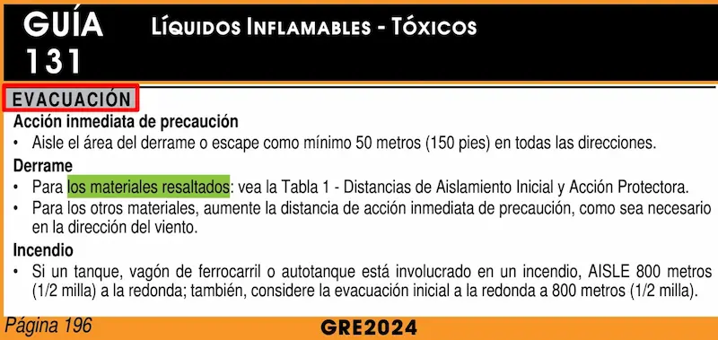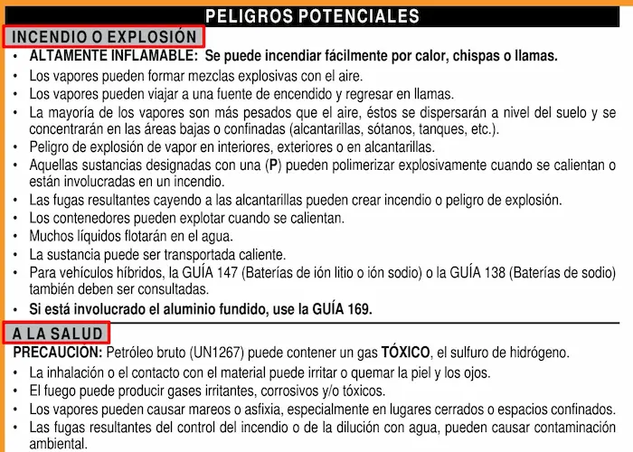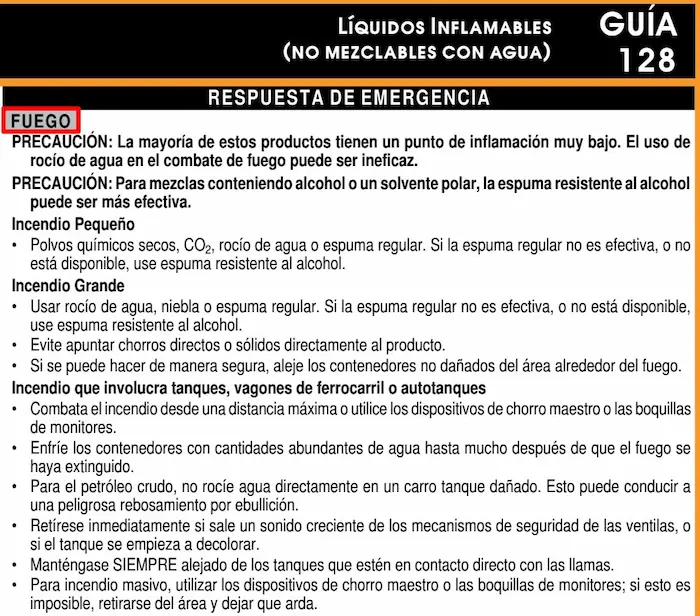 • Por ejemplo: Guía 128 – Líquidos Inflamables (no mezclables con agua).
