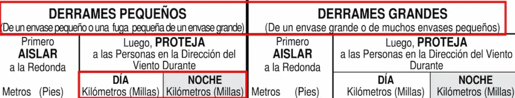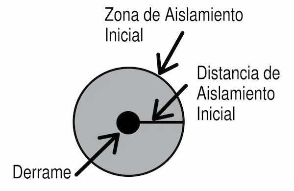• Esta distancia define el radio de una zona (zona de aislamiento inicial) que rodea el derrame en TODAS LAS DIRECCIONES.