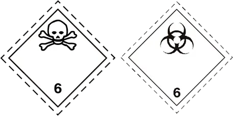 • Color y diseño: Deben corresponder totalmente a la etiqueta de la clase de substancia peligrosa de que se trate en lo que se refiere al diseño, color y símbolo.
