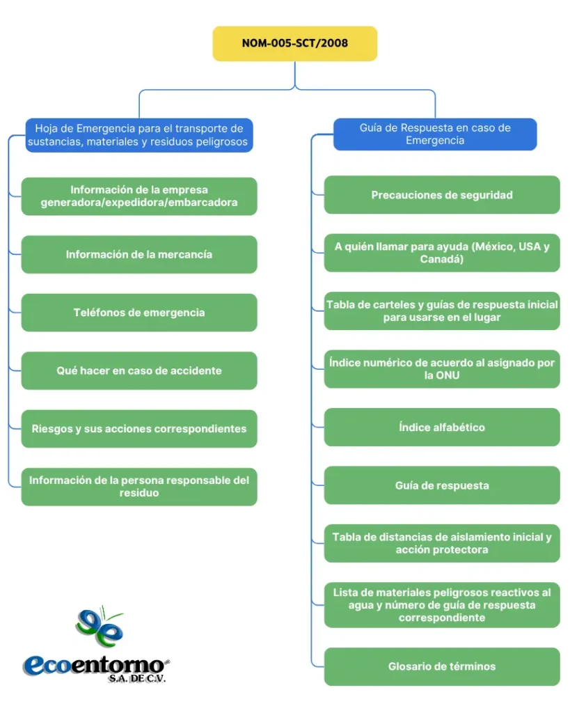 Información de Emergencia para el Transporte de Materiales Peligrosos según la NOM-005-SCT/2008